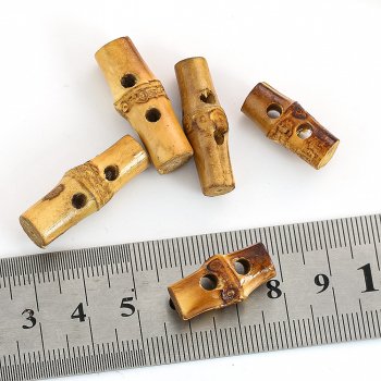 Vintage Bamboo Buttons – 5PCS Two Hole Irregular Embellishments for DIY Crafts & Sewing
