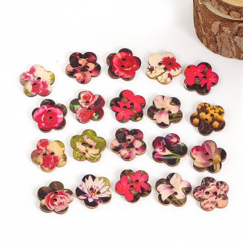 Natural Wooden Flower Buttons – 50pcs Colorful DIY Sewing Accessories