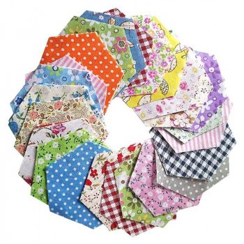 100pcs Mix Colored Hexagon Cotton Fabric for Quilting & Sewing Projects
