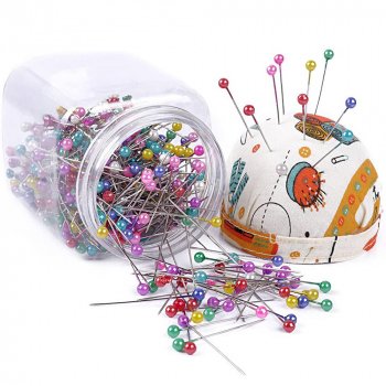 500Pcs Pearl Head Quilting Pins with Fabric Covered Pin Cushion